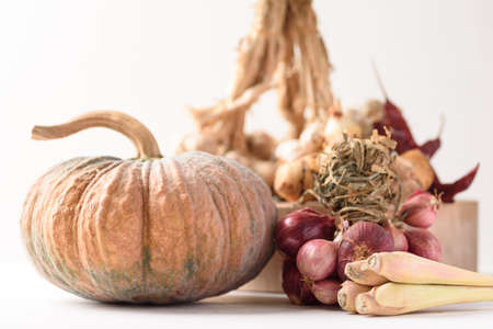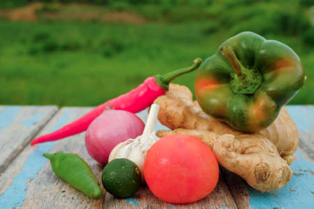 Fresh organic Asian spices and vegetables from local farmer market, Northern Thailand