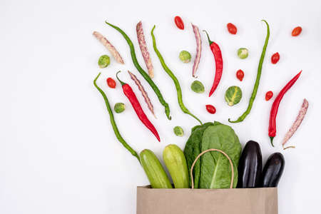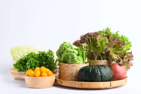 Fresh various vegetables with natural packaging on white background, Organic vegetable for salad cooking Vegan food concept