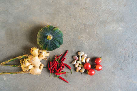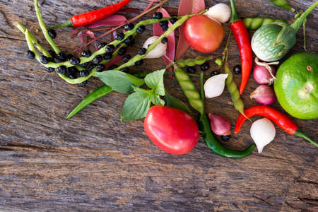 Fresh organic Asian vegetables and spices from local farmer market, Northern Thailand