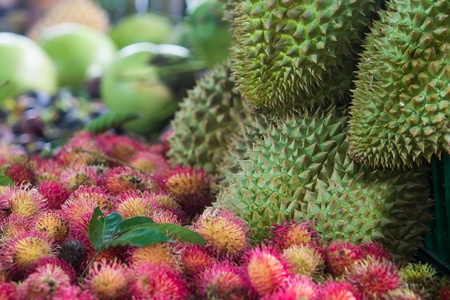 Tropical fruits on the famous market in Chinatown, Singapore.
