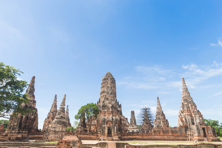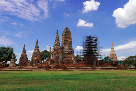 Stupa ruins of Ayutthaya Historical Park, ancient and beautiful temple in Ayutthaya period Wat Chaiwatthanaram, Thailand