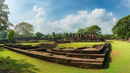 A panoramic view of the ruins of Polonnaruwa in Sri Lanka. Copy space available