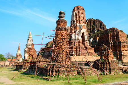 Restoration of the ruins pagoda at wat mahathat temple, Ayutthaya, Thailand