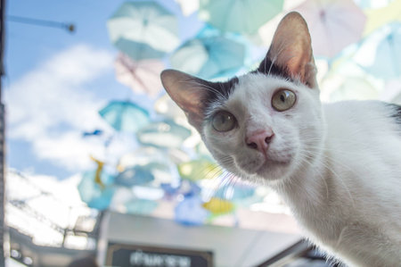 Beautiful cute cat in thai temple,Phuket Island Thailand
