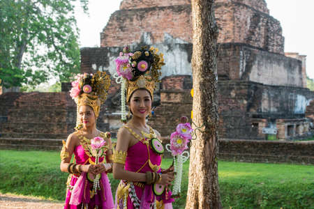 Thai women wearing traditional costumes in ancient times During the Ayutthaya period