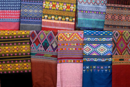 Close-up of shawls for sale, Sainyabuli Province, Laos