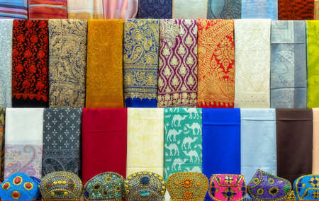 Arab bazaar. samples of the national fabric. Dubai. UAE