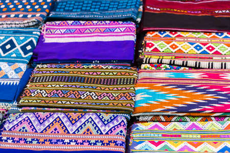 Beautiful Thai tribal clothes and tribal textile style in the northern of thailand. Beautiful handmade tribal cloth ethnic patterns for sale in the local market.