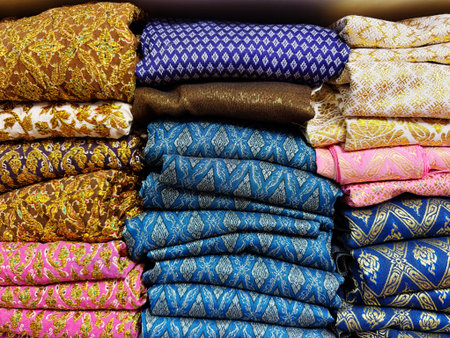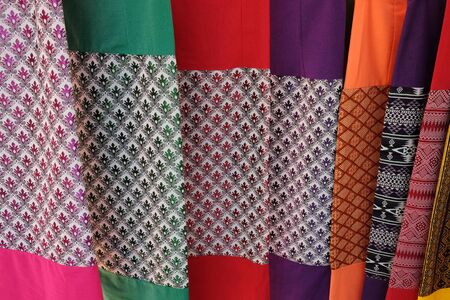 Traditional Thai silk cloth in fashion store.Beautiful background Household handicrafts of Thai silk