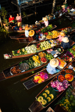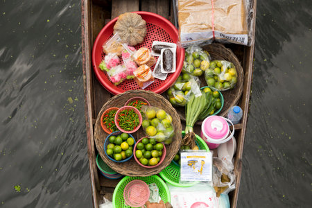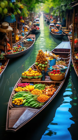 Colorful Floating Market: Thai Traditions and Exotic Produce on the Bangkok Canal