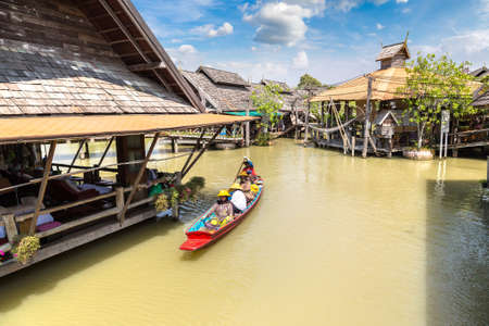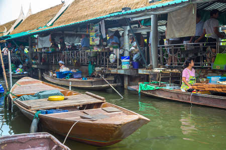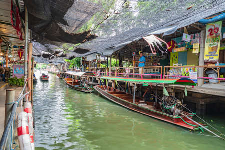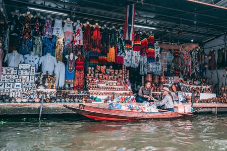 BANGKOK, THAILAND - MARCH 22, 2018: Floating market in Thailand in a summer day