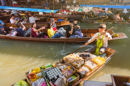 Ratchaburi ,Thailand- March 20 2016 : Damnoen Saduak Floating Market, tourists visiting by boat, located in Ratchaburi, Thailand.