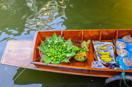 Fruits and vegetables on the boat at Damnoen Saduak floating market in Bangkok, Thailand
