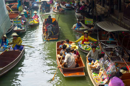 RATCHABURI, THAILAND - NOV 30: Boats ferry people at Damnoen Saduak floating market on November 30, 2011 in Ratchaburi, Thailand. Its famous for the traditional and old method of selling and buying.