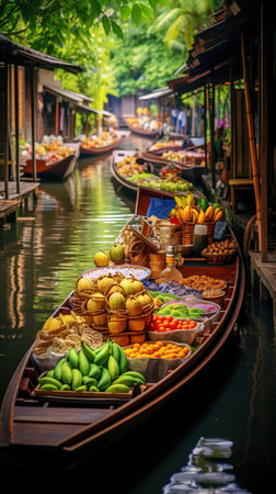 Vibrant Thai Floating Market with Aromas of Lemongrass and Ginger