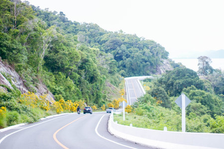 Chanthaburi, Thailand - 18 March 2020: Chalerm Burapha Chonlathit Highway from Noen Nang Phaya Viewpoint and is a beautiful landmark of Chanthaburi Province, Thailand