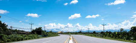 road with electric pole along the road on blue sky with the clouds background.