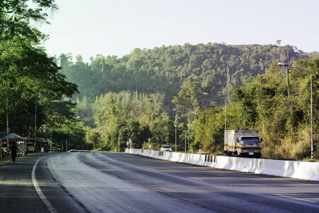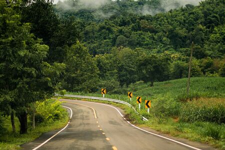 Beautiful romantic mountain route in Thailand, Curve of road, tropical road in jungle, Scenic view. Road Landscape Northern part Thailand