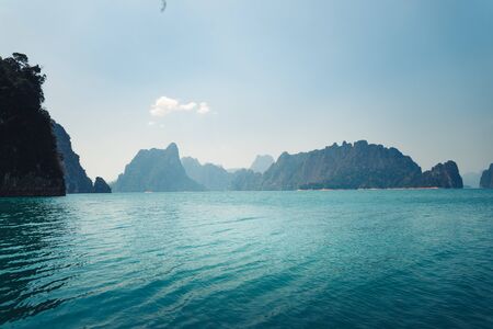Lakes and rocky mountains, reservoirs,Beautiful blue lake view,Cheow Lan Lake