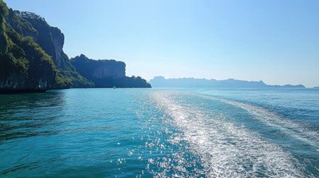 Experience the serene beauty of crystal-clear waters reflecting sunlight, framed by stunning cliffs in this tranquil seascape. Perfect for travel enthusiasts.