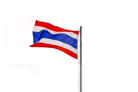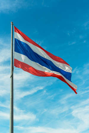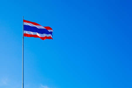 National Flag of Thailand on pole against nature blue sky background.