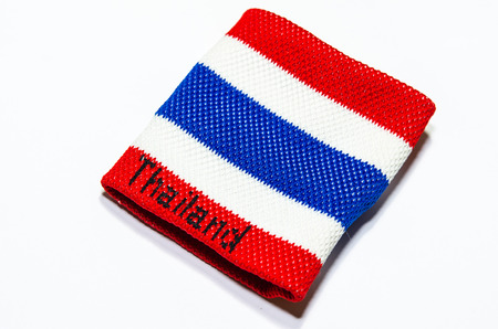 Wristband striped flag of Thailand placed on a white background.