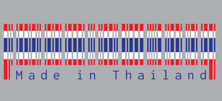 Barcode set the color of Thai flag, blue red and white color in grey background with text: Made in Thailand. concept of sale or business.