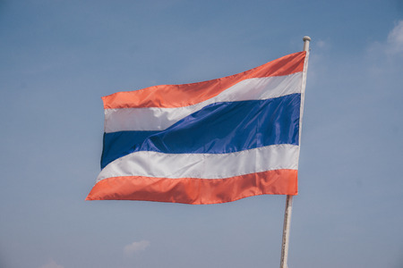 Flag of Thailand waving with blue sky