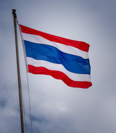 The flag of Thailand flutters in the wind.