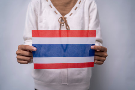 Image of waving Thai flag of Thailand, The national flag fluttering in the wind red white and blue