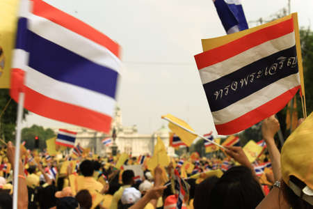 BANGKOK - DECEMBER 5: Thai people sit outside to celebrate for the 85th birthday of HM King Bhumibol Adulyadej on December 5, 2012 in Bangkok, Thailand.