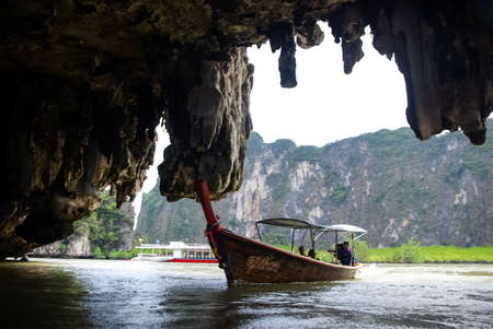 Phuket, Thailand - July 23, 2014: boat in the water near the rock, the bay off the coast of Thailand.