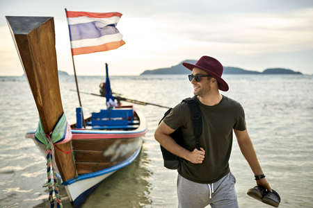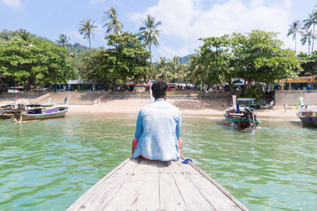 Young Man Tourist Sail Long Tail Thailand Boat Ocean Sea Vacation Travel Trip Exotic Asia Holiday