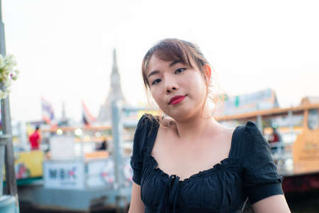 Asian beautiful woman looking to camera with smile and happiness on her leisure day