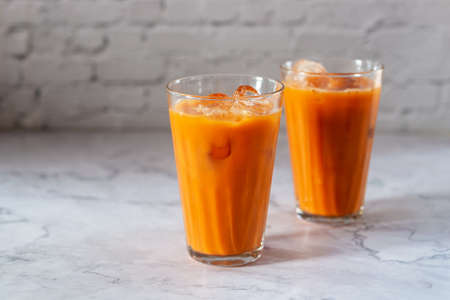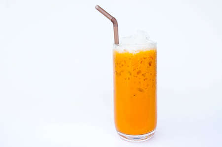 Ice Thai milk tea drink. Thai tea famous beverage drink traditional