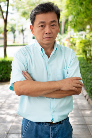 angry, upset, unhappy, frustrated, unfriendly middle age old asian man looking at you