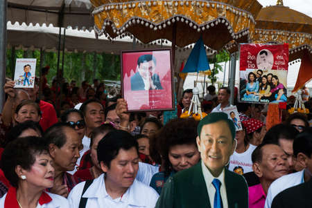 NONTHABURI, THAILAND - JULY 26 : Thailand the Red Shirt hand holding picture of Thaksin Shinawatra for his birthday on July 26, 2013 in Nonthaburi, Thailand.