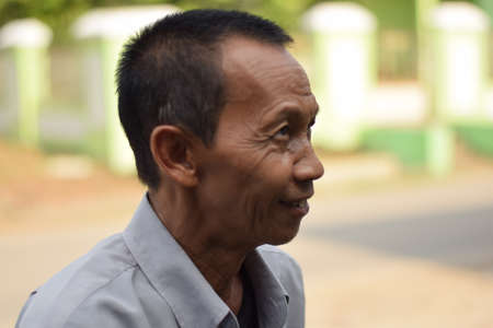 Editorial use only; the old man was staring down and pondering, upload/taken at Bekasi, Indonesia in Desember, 2018.
