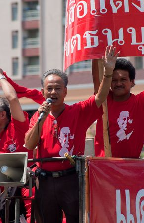 BANGKOK, THAILAND - APRIL 6: Members of the Red Shirts political movement who try to force prime minister Abhisit Vejjajiva to resign by staging huge demonstrations in Bangkok, Thailand in March and April 2010.