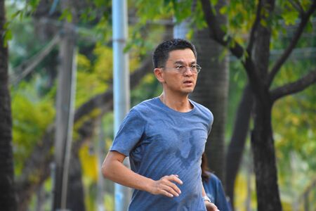 Thailand. Bangkok. January 2020. The athlete in a public Park. A man goes in for sports in Central Park. Health care.