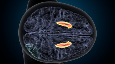 Medically illustration of the amygdaloid body. 3D render
