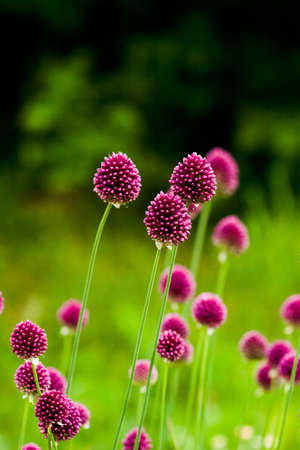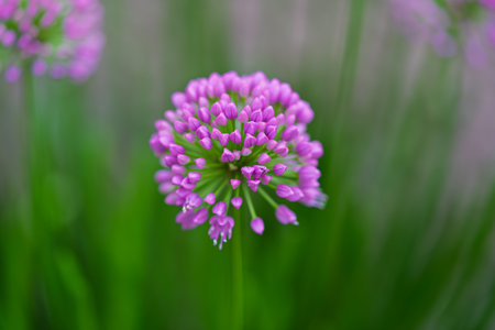 wild onion flowers on green background