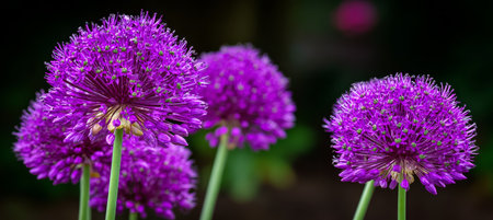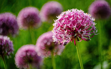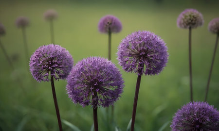 Allium Flowers in a Beautiful Garden Setting, Vibrant Lavender Spheres in Full Bloom, Spring Delight