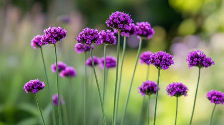 Vibrant purple flowers swaying gently under soft sunlight in a serene garden during late spring
