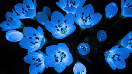 Beautiful blue flowers on a black background. Blue flowers on a black background.