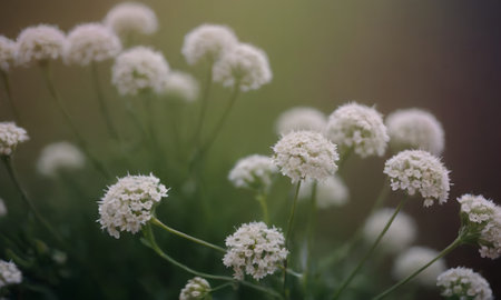 White flowers on green background with soft focus and bokeh.