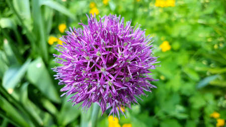 Purple Allium flower blooming in the garden, stock photo