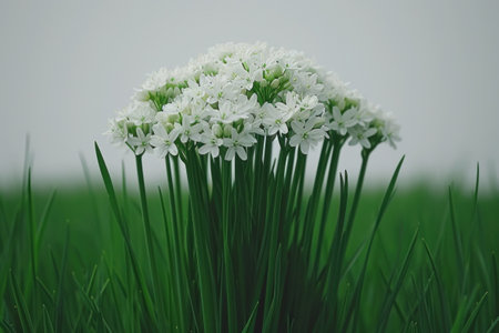 A close up of a bunch of white flowers in the grass, AI