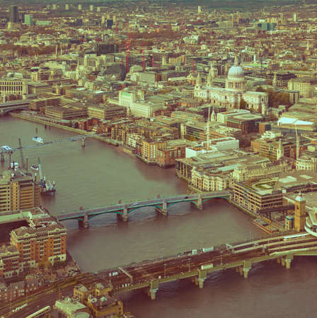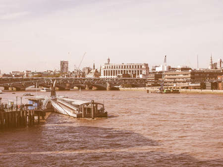 LONDON, UK - SEPTEMBER 29, 2015: Panoramic view of River Thames vintage