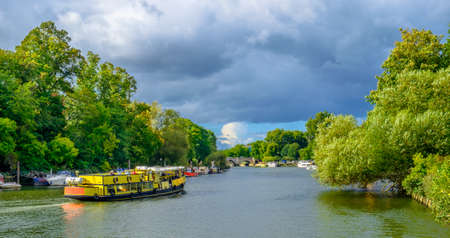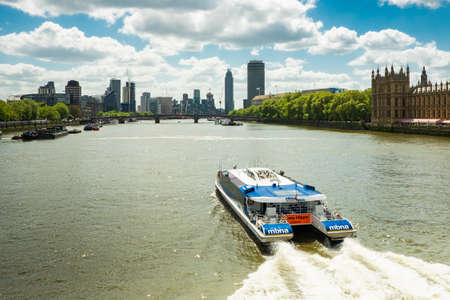 River cruise boat on the river Thames on a overcast day in summer, London U.K